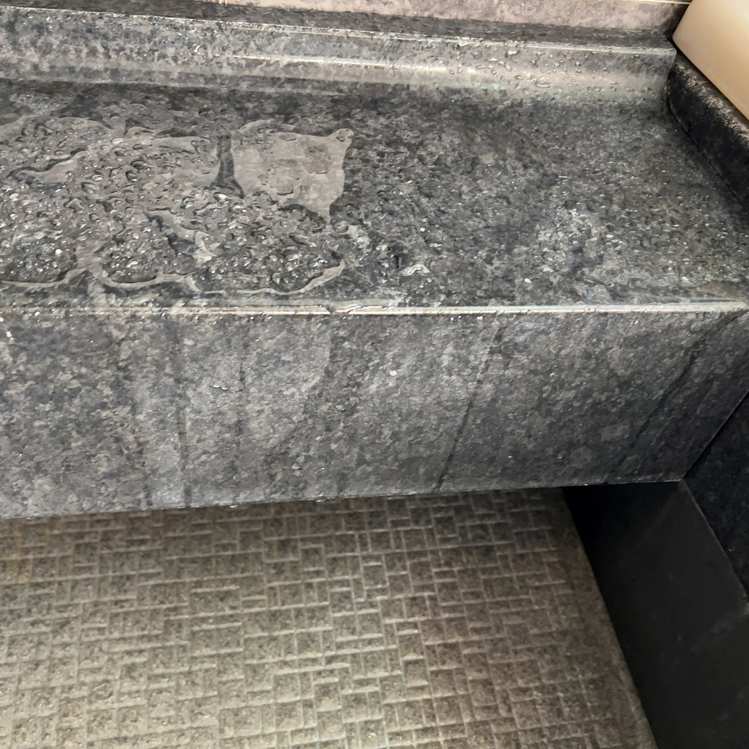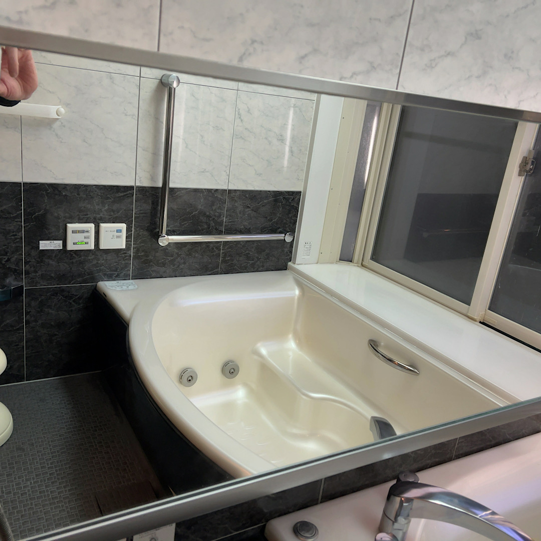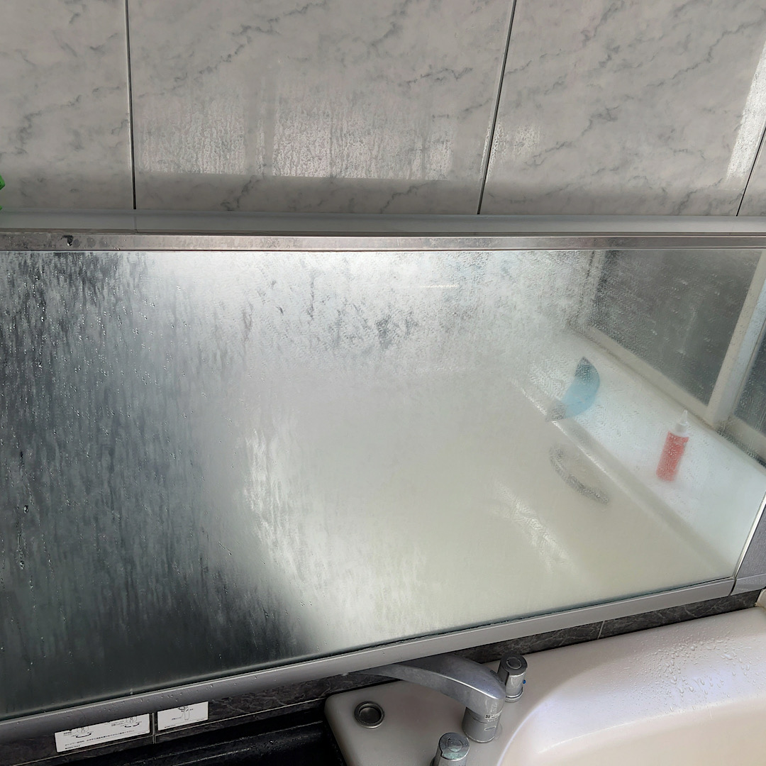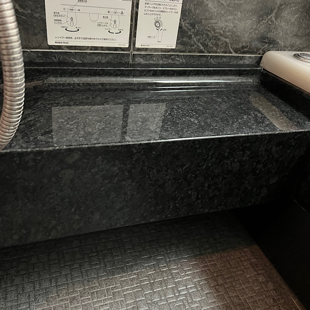 久留米市で、前にエアコンクリーニングをしたお客様から浴室クリーニング依頼。台等をコーティングを行いキレイになりました。鏡も機械で磨いてます。