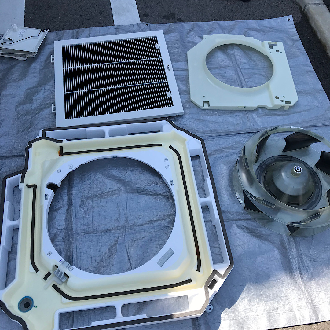 今週は、久留米市、筑後市、みやき町でエアコンクリーニングを行いました。種類は、業務用天井埋込4方向エアコン、天井埋込1方向エアコン、お掃除機能付きエアコン、通常エアコンです。パーツを洗う場合は、一家屋は外、マンションは浴室の洗い場、病院は駐車場をお借りしてます。ハウスクリーニングのご相談でレンジフードと浴室がありアドバイス等行ってます。