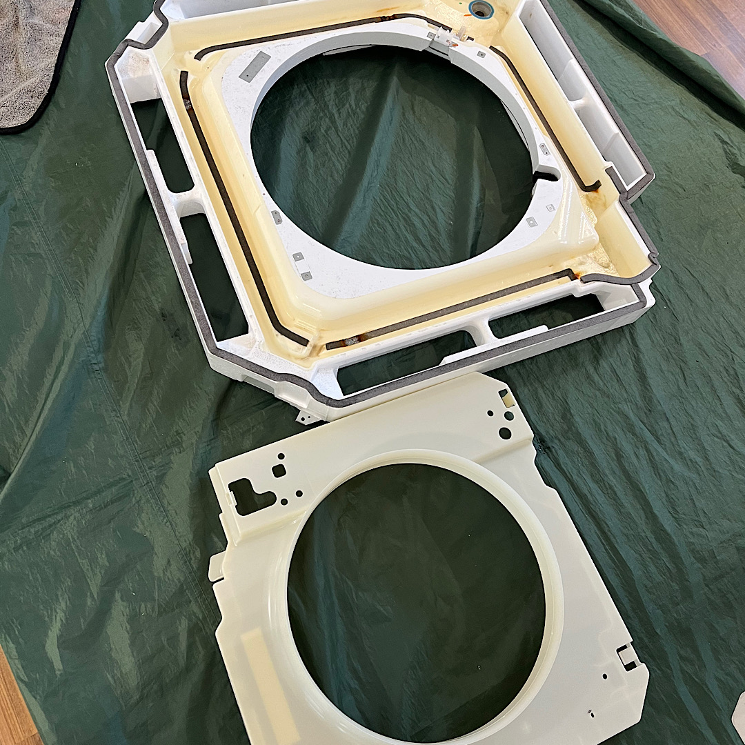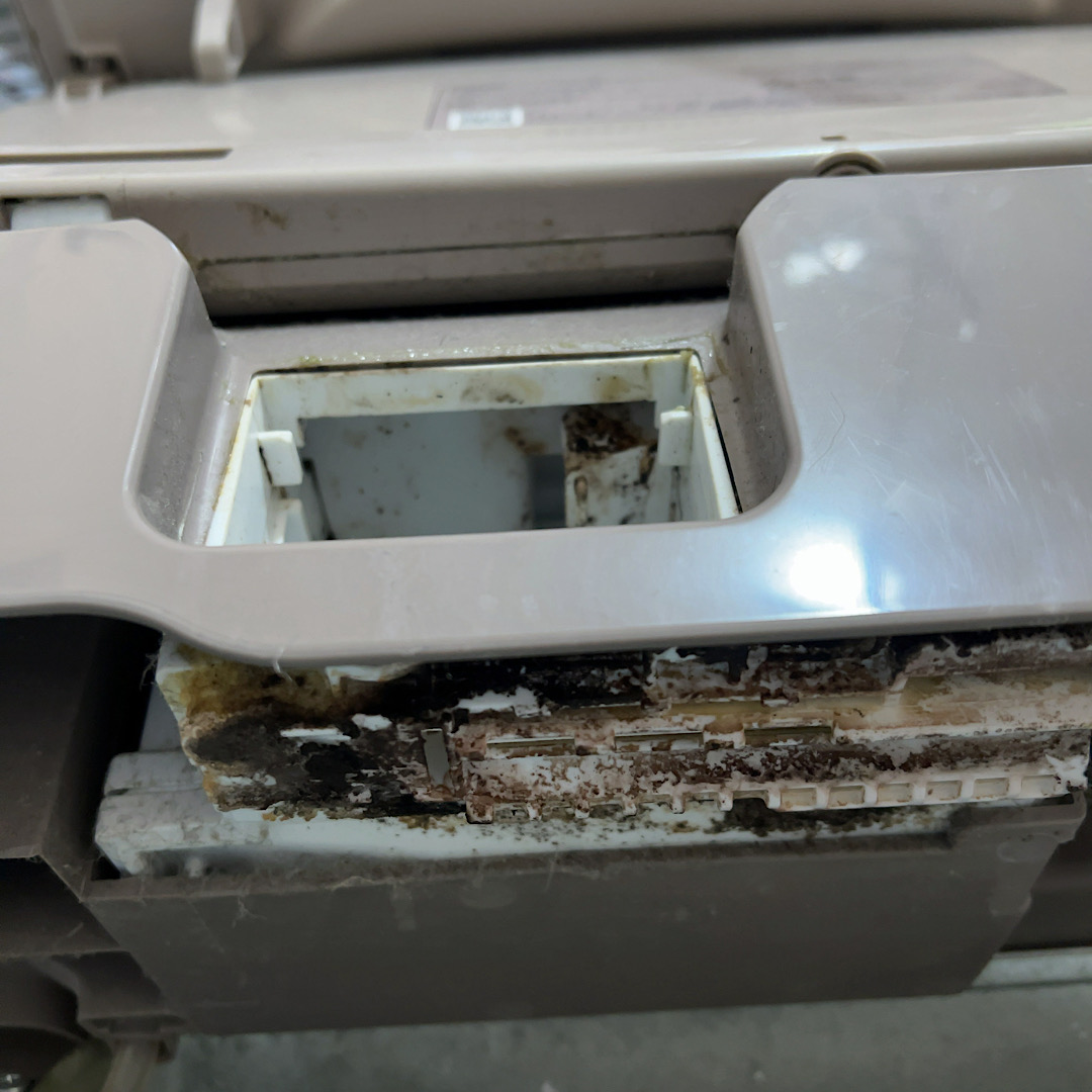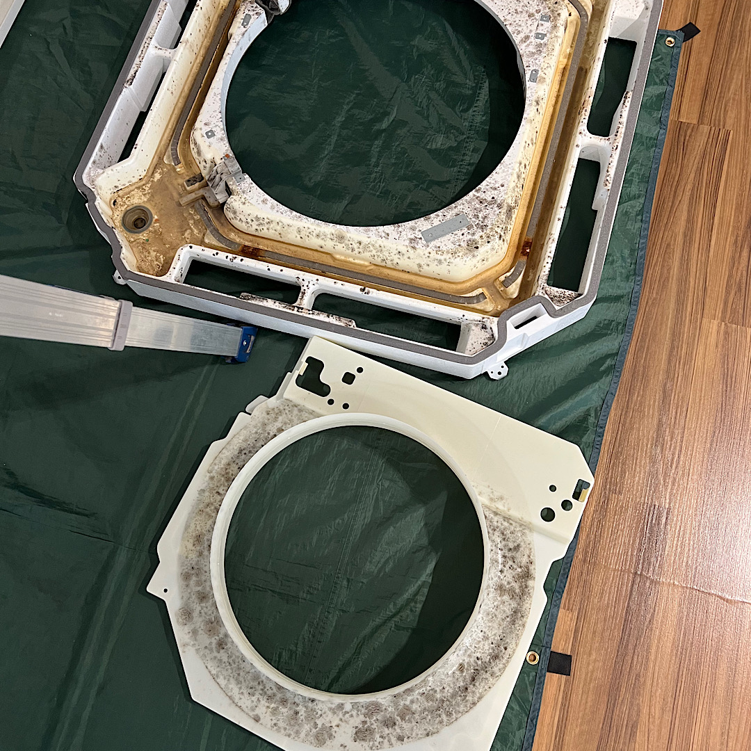 久留米市と筑後市で、洗濯機クリーニングを行いました。洗濯機のフタを開けたら、洗剤を入れる裏がものすごく汚れていました。GOODサービスの洗濯機クリーニングは、フタを開けて、洗濯槽はそのままで、水を溜めて洗剤を入れて、長いブラシをドリルに取り付け、洗濯槽の回りをぐるぐる回して、汚れをとり、その後組み立て、全体をキレイにした後、水を溜めて、洗濯槽除菌クリーナーを入れて10時以上漬け込み、お客様に一度回して頂き、終了になります。99除菌されてキレイになります。